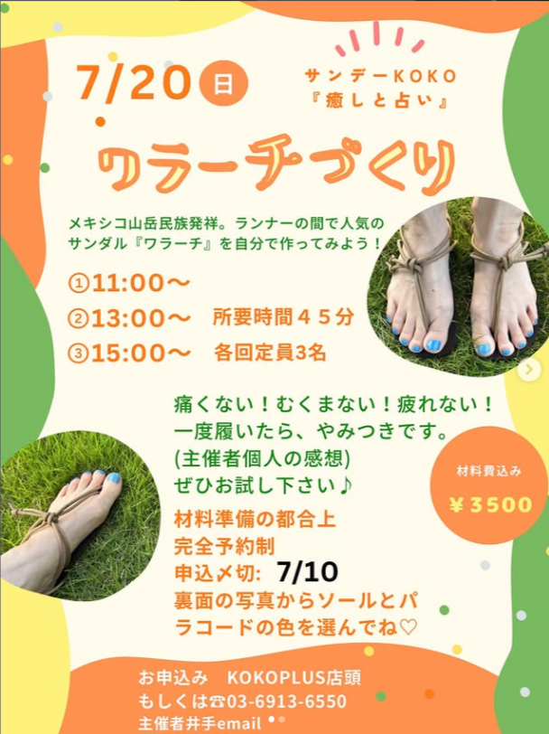 「ワラチーは、足本来の機能を引き出し、自然な歩行をサポートしてくれる素晴らしいサンダルです。自分の手で作ることで、より愛着が湧き、心と体も喜ぶ体験となるでしょう。皆さんと一緒にワラチー作りができることを楽しみにしています!」